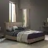 Ντυμένο κρεβάτι με μοντέρνο ύφος υψηλής αισθητικής με ψηλό και επιβλητικό κεφαλάρι του με χειροποίητο ράψιμο.
